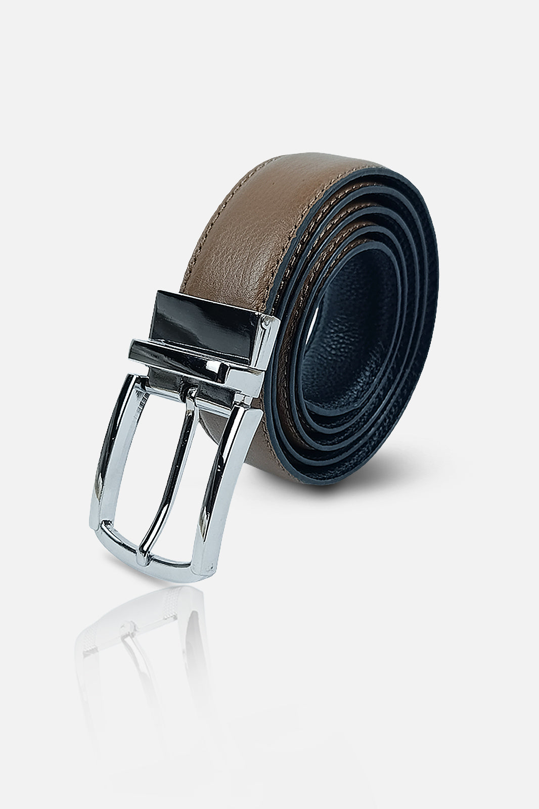 Tan Brown & Black Textured Reversable Belt